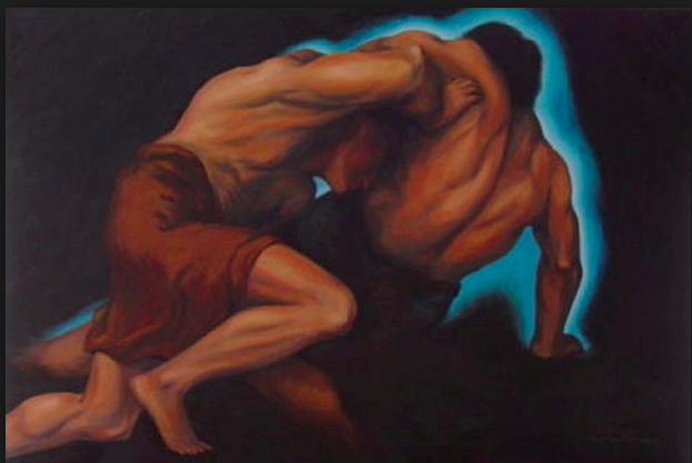 At this time in Jacob’s life, he is on his way back to reconcile with Esau. He has been in a self-imposed exile of sorts, after fleeing for his life to Haraan to live with his mother’s kinfolk. While there, he got married (twice, to Leah and Rachel), worked for his family, and watched his personal assets increase. It was now time for him to return and set things right with his brother. On his journey back home, just before entering his hometown, he goes off by himself along the north banks of the Jabbok River. We don’t have all of the details what he is doing there, but I’m pretty sure we have all been there before, there before a big decision, a difficult responsibility, a sinful past, a step into the unknown. It is while there, wrestling with himself, that Jacob enters yet another brawl, as someone jumps from out of nowhere and wrestles him to the ground. We understand that man to be an angel of God, one sent by God. It didn’t take Jacob long to understand that this was no ordinary man who was coming at him in this ring. He sees God in the wrestling moves, which makes him strive even more to make sure he was getting from God what he wanted the most–a blessing. By the end of the match, he has named this man, Peniel, indicating his awareness that he had come face to face not with some man, but with God. Jacob has been wrestling with God.