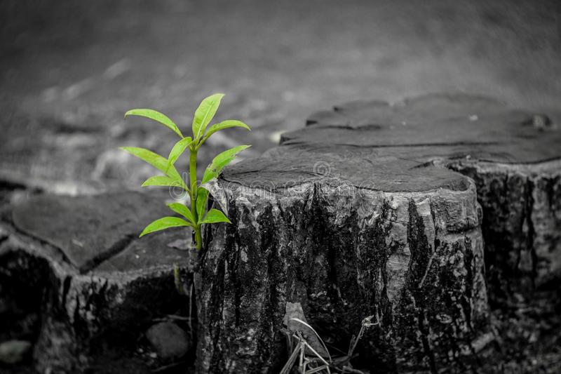 new-growth-old-concept-recycled-tree-stump-growing-new-sprout-seedling-aged-old-log-warm-gray-texture-rings-142421210
